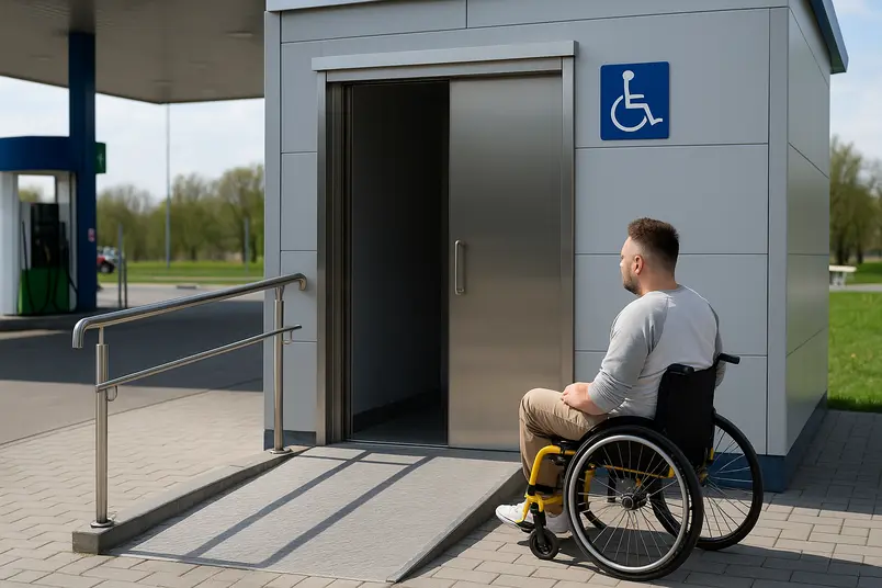 ห้องน้ำคนพิการ ปตท เป็นต้นแบบสุขา Universal Design ของไทย ด้วยมาตรฐานประตู 90 ซม. พื้นกันลื่น ราวจับสแตนเลส และระบบ SOS เรียกเจ้าหน้าที่ งานก่อสร้างใช้เวลาสั้น หากเจ้าของปั๊มหรือธุรกิจริมทางต้องการยกระดับบริการ การนำโมดูลสำเร็จรูปไปติดตั้งจะช่วยประหยัดเวลาและสร้างคุณภาพชีวิตที่ดีแก่ทุกคนที่แวะมาใช้บริการ